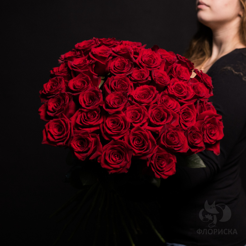 Нам собрали прекрасный букет из красных роз.